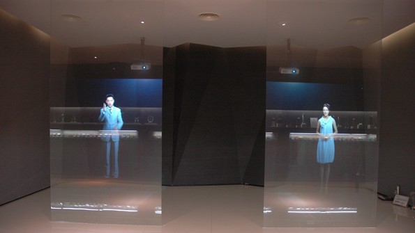 幻影成像系統(tǒng)也稱虛擬成像是基于“實景造型”和“幻影”的光學(xué)成像結(jié)合,將所拍攝的影像(人、物)投射到布景箱中的主體模型景觀中,演示故事的發(fā)展過程。繪聲繪色,虛幻莫測 ……